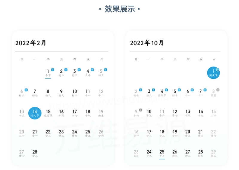 节日名称,工作日时显示“无”,周末时显示“周末”,节日时显示节日名称 |