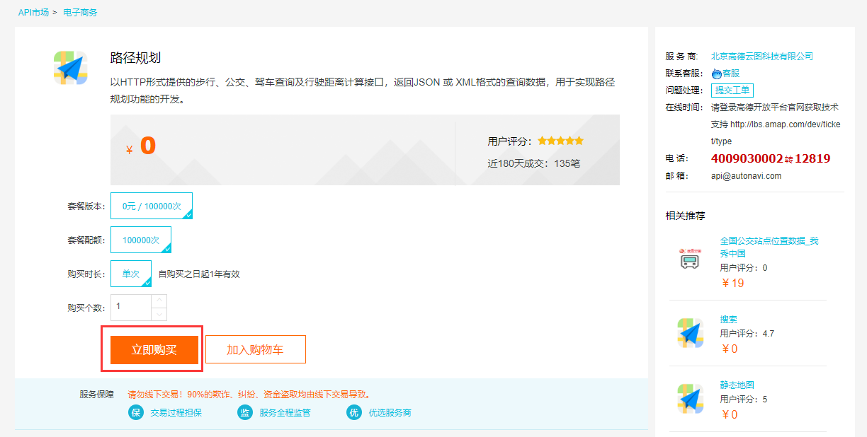 # 2. 在阿里云购买路径规划接口