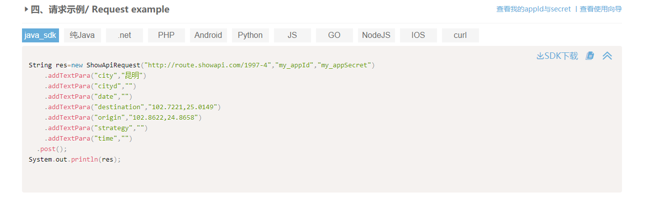 [TOC] [点此进入接口详情界面](https://www.showapi.com/apiGateway/view?apiCode=1997 "点此进入接口详情界面") 示例代码如下图: