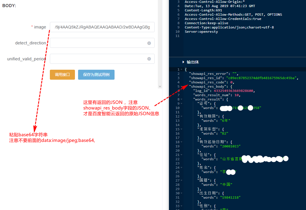 进入[易源测试界面](https://www.showapi.com/apiGateway/onlineTest?env=draft&apiCode=2003&pointCode=8 "易源测试界面"),输入上述文本并进行调用,结果如图: