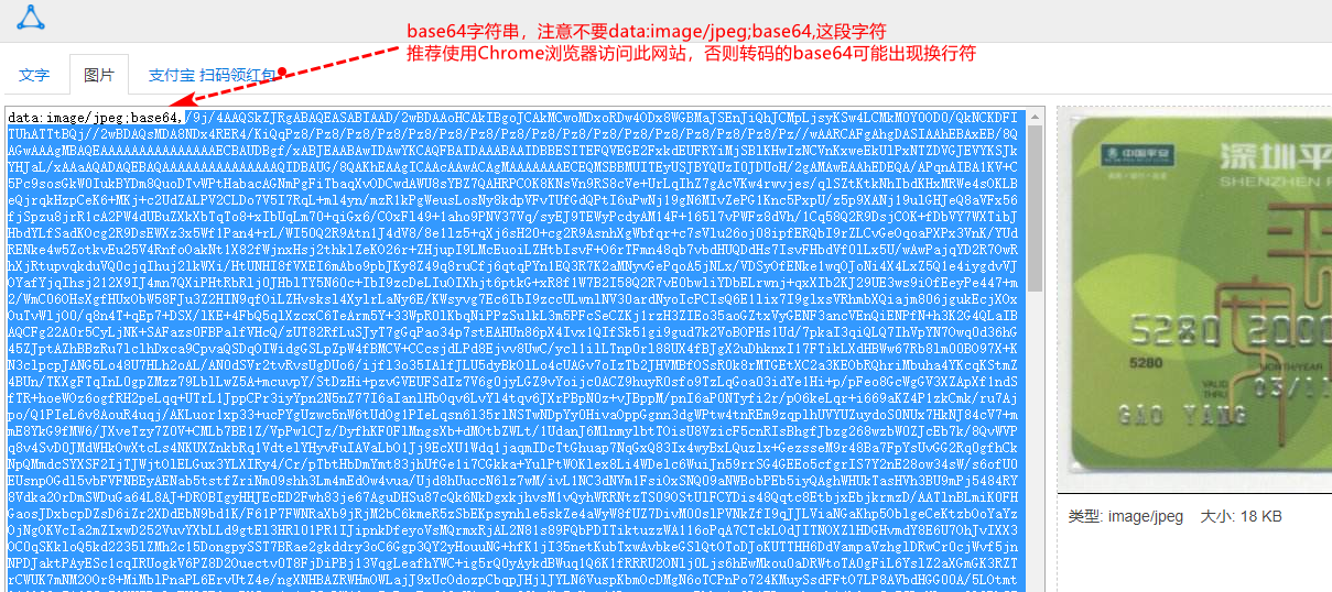 <text style="color:red">注意:上面的base64字符串只是整个字符串中的一小部分内容,不要直接复制使用!!!</text>