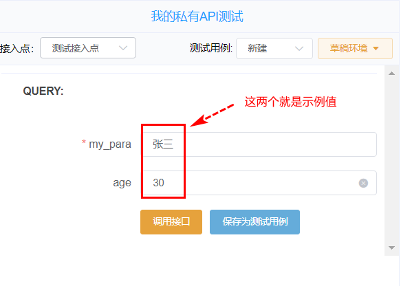 示例值是在接口显示时,默认填写在表单中的值,如下图: