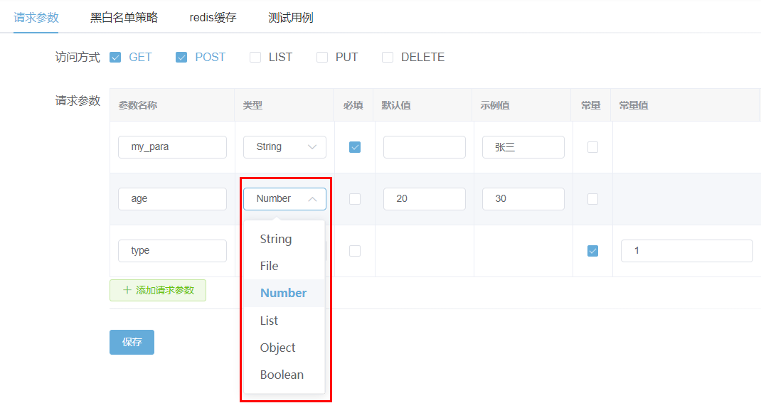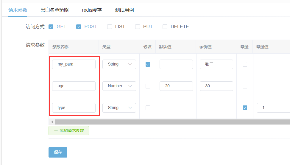 定义客户传输时的字段名称。比如上图中定义了一个my_para字段,在客户端传输时,应该这样: