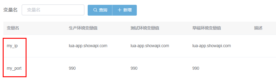 此输入参数是当前API主人定义的环境变量。如果有如下环境变量: