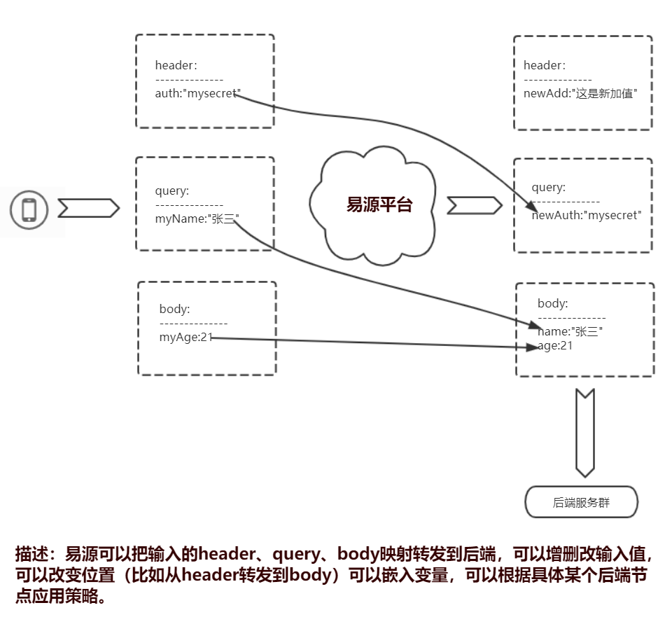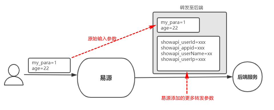 如果后端服务需要了解调用者的更多信息,那易源就得要转发更多信息到后端。其流程示意图示下: