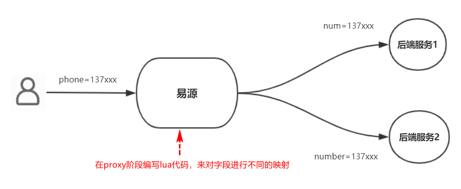 那我们可以在易源的proxy阶段编写代码转换,根据结点名称进行不同的操作,如下图流程: