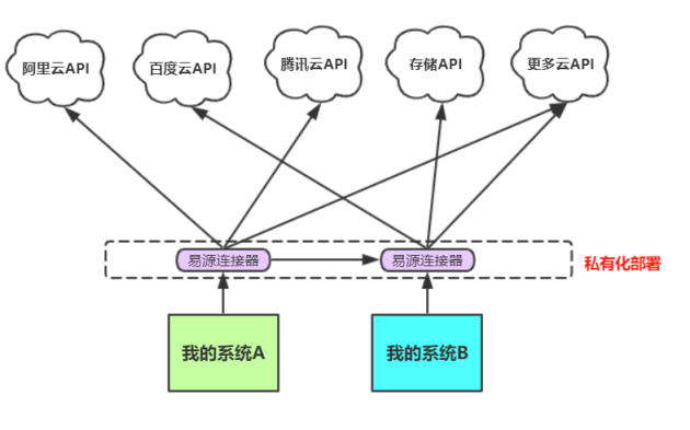 分布式、去中心化是将来发展的趋势。易源也会提供私有化的连接器系统,如下图所示: