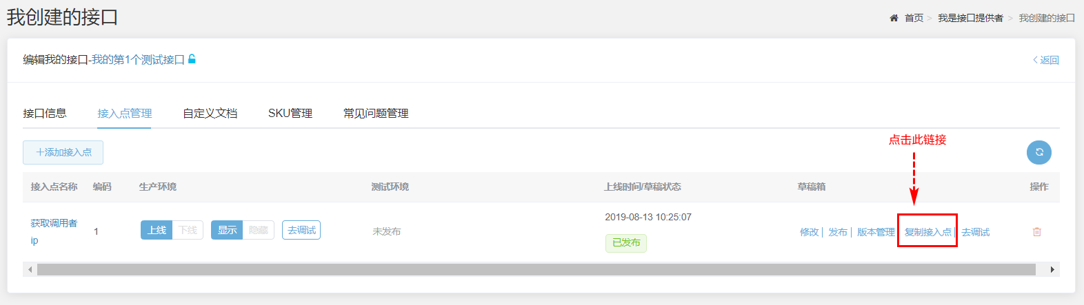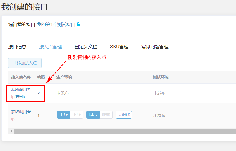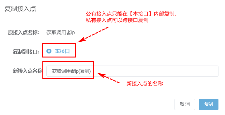 当一个接口下有很多个接入点时,且接入点参数比较类似,那使用【复制接入点】功能是非常方便的。