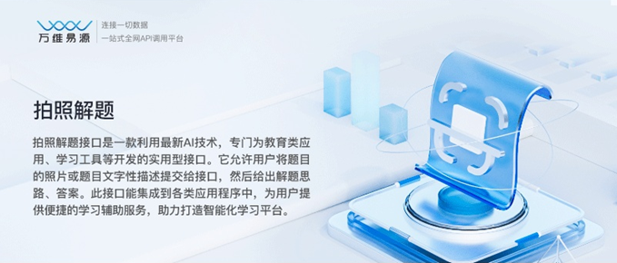 拍照解题API接口:通过上传试题图片或文字,快速返回解题思路与答案。本接口专为教育类App与学习工具设