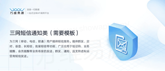 三网短信验证码:三网合一的短信群发服务,全面支持各类短信验证码,包括登录验证、密码找回、短信通知、