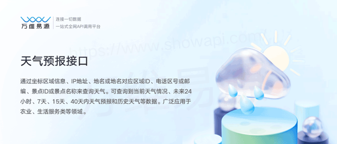 天气预报查询:支持通过坐标、IP、地名、区号、景点名称等方式,查询当前24小时预报,未来15天、40天